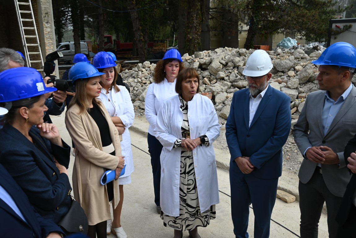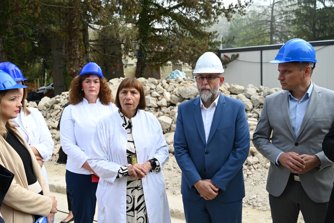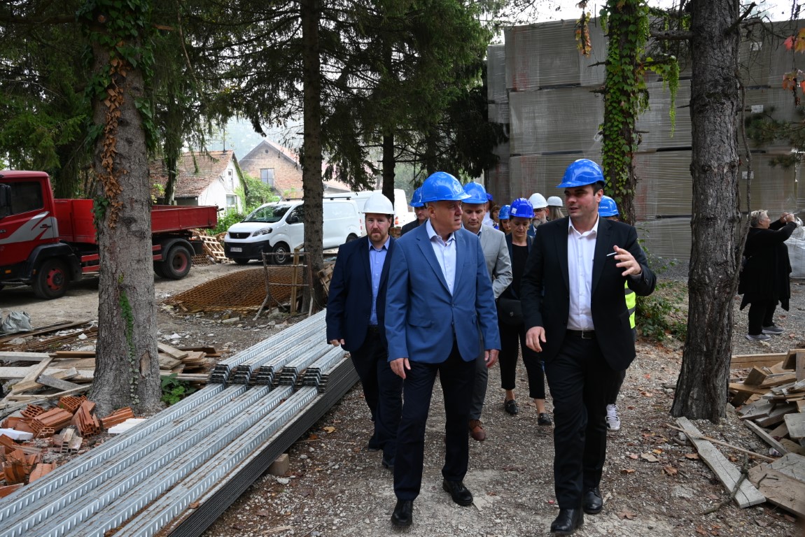 Prvo gradilište koje su župan Celjak i ministar Bačić sa suradnicima obišli je zgrada Jodnog lječilišta u Sisku, na kojoj se u ovome trenutku provodi obnova nakon potresa, ali ujedno i mjesto gradnje jednog od najznačajnijih revitalizacijskih projekata, odnosno nove zgrade medicinskog wellness & spa centra Sisačko-moslavačke županije.