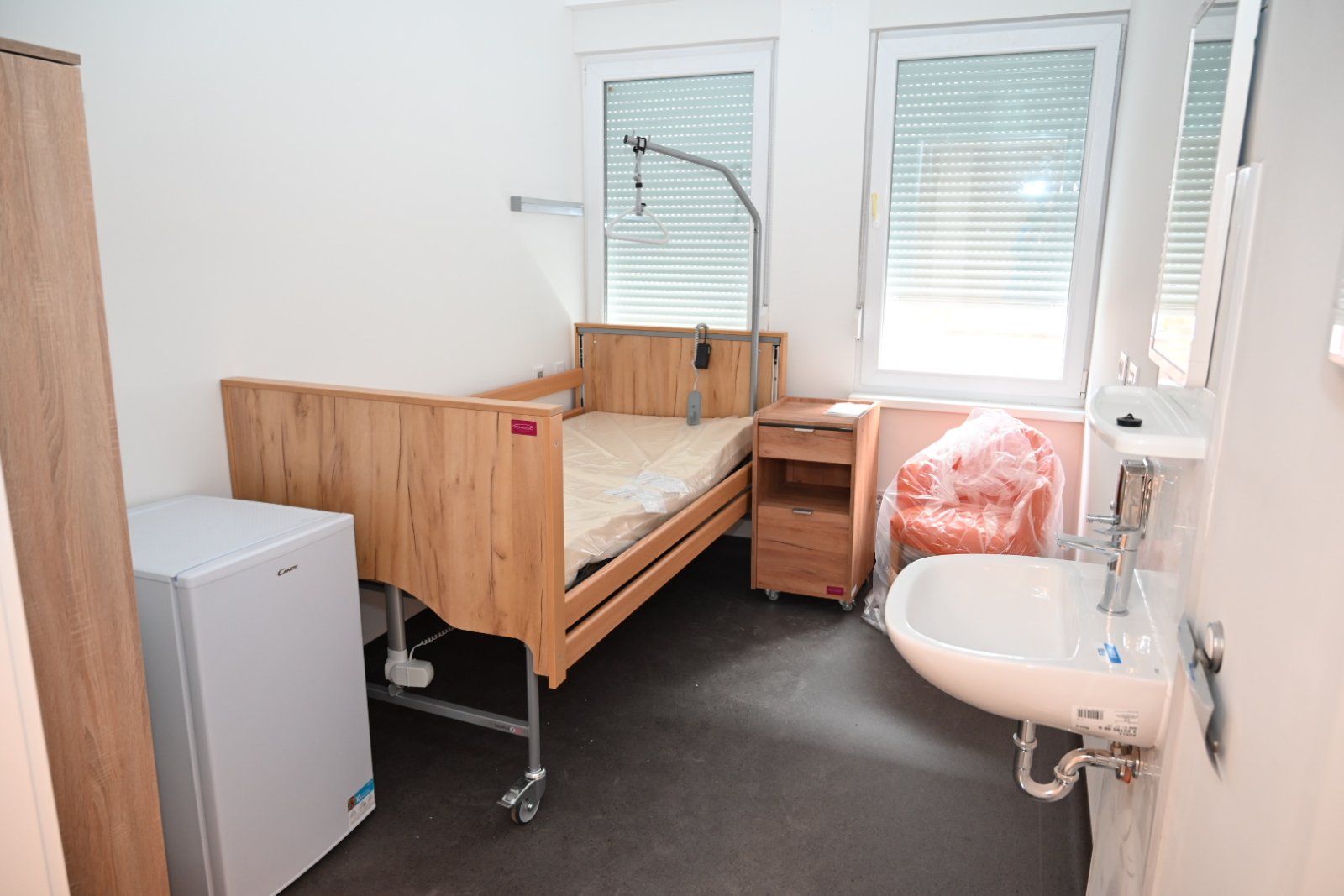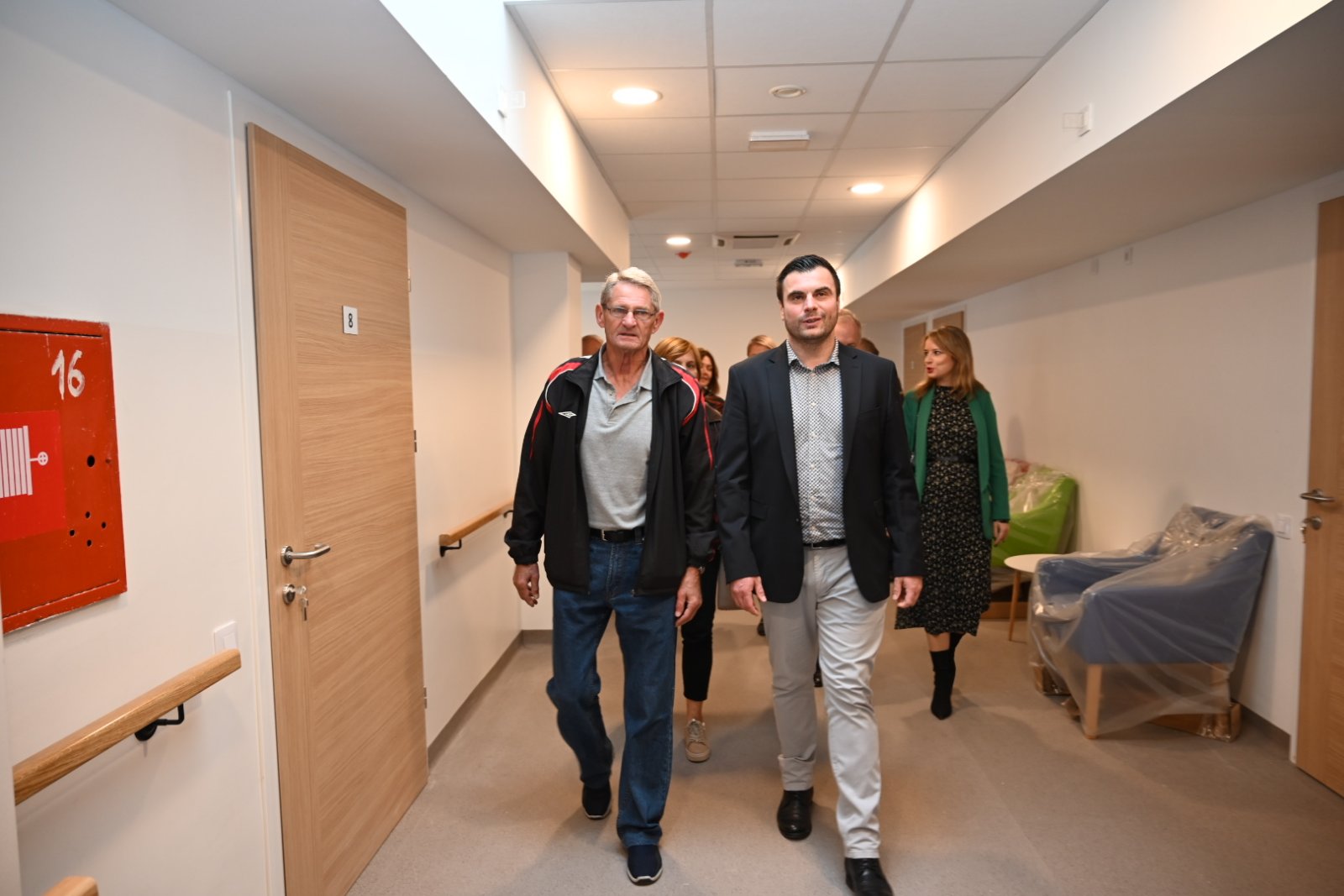 „Obišli smo danas radove obnove zgrade Odjela za fizikalnu medicinu i rehabilitaciju u sastavu Opće bolnice „Dr. Ivo Pedišić“. Očekujemo da će obnova ove zgrade biti završena na proljeće iduće godine. Vrijednost obnove je oko 3 milijuna €. Međutim, ne samo da obnavljamo i vraćamo zgradu u stanje prije potresa, nego dodajemo novu vrijednost. Nadograđujemo sustav i iza postojeće zgrade gradit ćemo novu zgradu površine 5100 m2 sa 4 unutarnja bazena za grupnu hidroterapiju. Zgrada će imati wellness, spa prostor, prostore za masažu, saune, multifunkcionalnu sportsku dvoranu, konferencijsku dvoranu i sve druge sadržaje. U tijeku je i izrada projektne dokumentacije za vanjske bazene. Što se tiče nove zgrade, predali smo glavni projekt za građevinsku dozvolu, a po dobivanju građevinske dozvole krećemo u nabavu za radove. Očekujem da ćemo raspisati nabavu krajem ove ili početkom iduće godine, što znači da bi radovi trebali početi najkasnije početkom ljeta iduće godine. Ovo je primjer kako dodajemo novu vrijednost i našim sugrađanima omogućujemo najkvalitetnije uvjete za fizikalnu medicinu i rehabilitaciju, te dermatologiju i venerologiju“ – rekao je prilikom obilaska gradilišta župan Celjak.