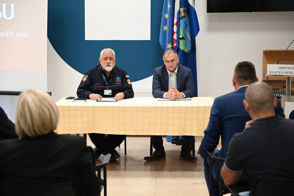 Prije obilaska, u zgradi privremenog sjedišta Sisačko-moslavačke županije održan je sastanak na temu obnove nakon potresa, a sastanku su nazočili župan Ivan Celjak sa suradnicima te potpredsjednik Vlade RH i ministar Branko Bačić s državnim tajnikom Domagojem Orlićem i njihovim suradnicima.