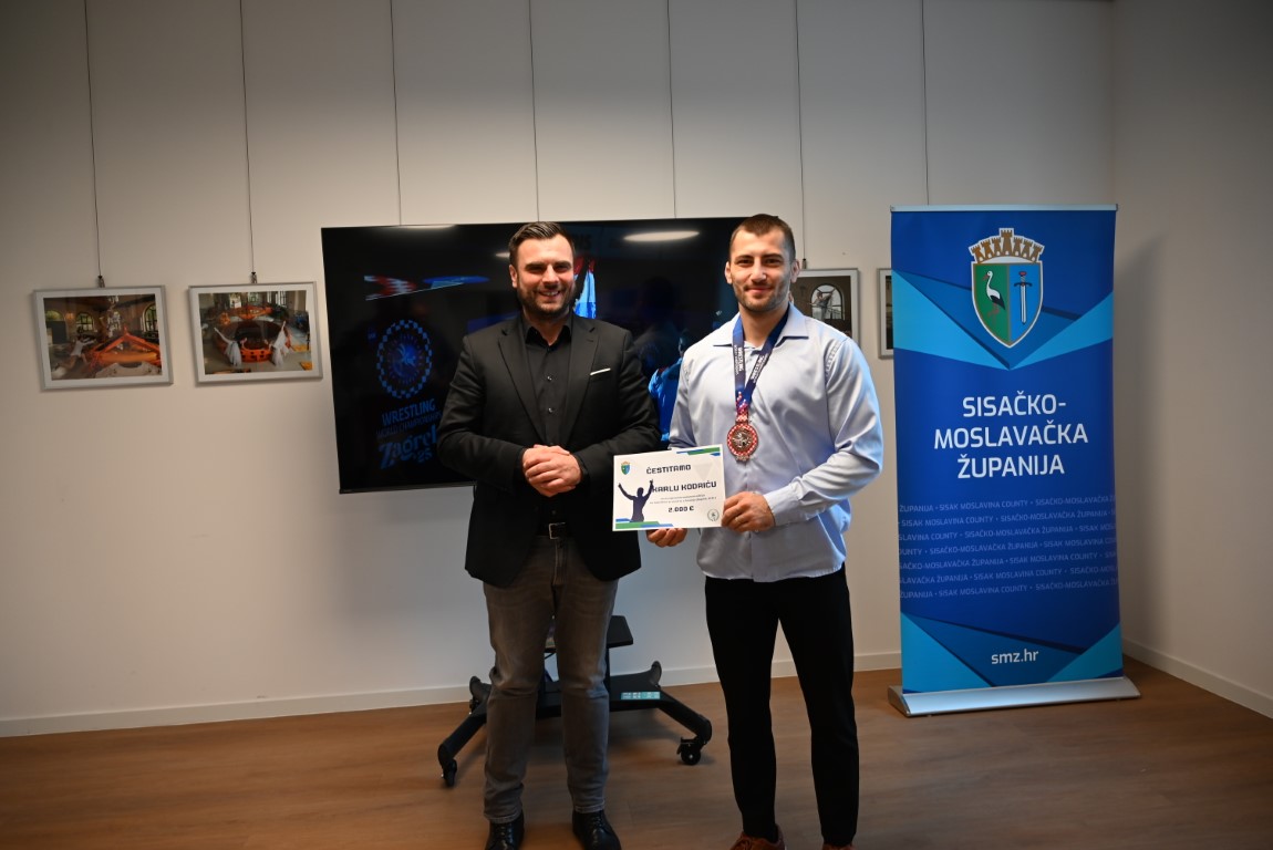 Župan Ivan Celjak primio je danas Karla Kodrića, hrvatskog reprezentativca i člana Hrvačkog kluba Petrinja, osvajača brončane medalje na Svjetskom prvenstvu u hrvanju koje je prošli tjedan održano u Zagrebu. Karlo se natjecao u kategoriji grčko-rimskim stilom do 82 kg. Prijemu su prisustvovali i Pavel Puklavec koji je također nastupio na Svjetskom prvenstvu te predsjednik i trener HK Petrinja Alen Pereković i Vinko Kadečka.